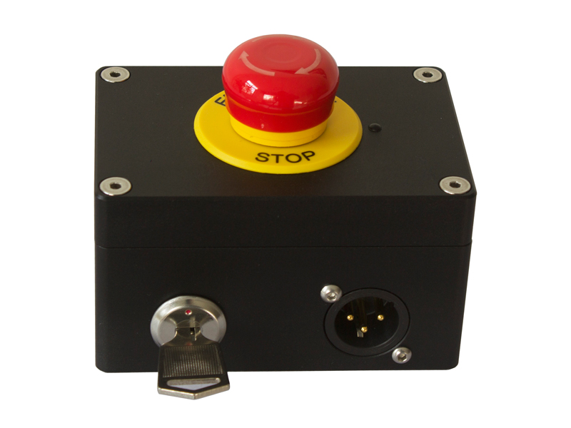 The E-Stop with key and button is a laser show safety unit.